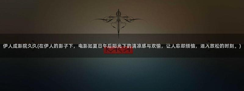 精品伊人久久久久影院:伊人久久影院亚洲(\"伊人久久影院:跨越时空的电影院体验\")